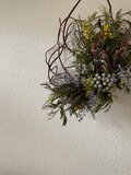 ミモザやエリカを入れた春らしい色合いのリースです。葉と赤づるの動きを生かしナチュラルな雰囲気に作りました。