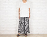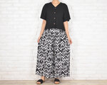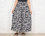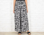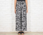 さらりとしたエスニック柄のワイドパンツ キュロット ブラック 黒