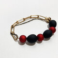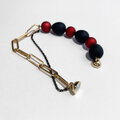 二連の太めゴールドチェーンと華奢な黒いチェーンを合わせた