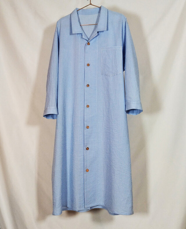 ブルー×ホワイト サッカー柄のナイトガウン/メンズワンピースになります。