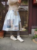 着物リメイク☆きれいな春色紬パッチでふんわりスカート76cm丈