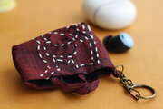 そこに添えた刺し子は、布の柄に合わせたデザイン性のある模様。生地と糸とが響き合い、見るたびに心をときめかせてくれるようなチャームに仕上がりました。