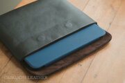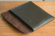 表の革には、程よい弾力とソフトな触感が特徴のシュリンクレザーを、iPadが直接触れる内装はやわらかなスエードを採用しています。
