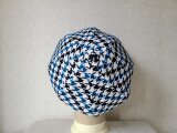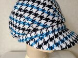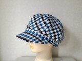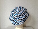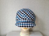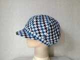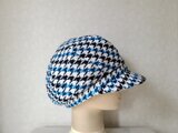 魅せる帽子☆麻混ハウンドトゥース柄のキャスケット~ブルー&モノトーン