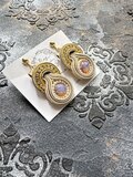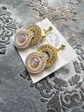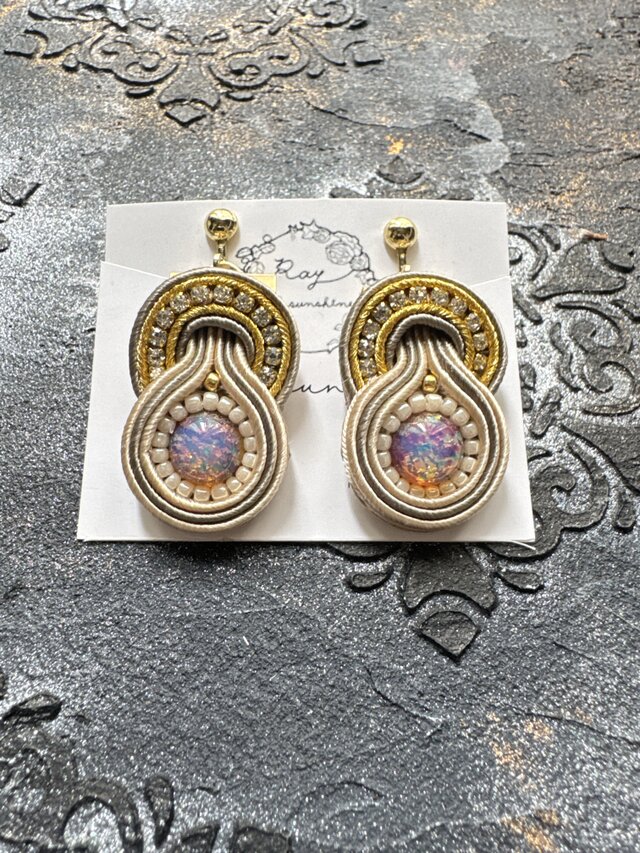 ヨーロッパ伝統のソウタシエ技法に煌めくチェコガラスとダイヤレーンを、ソウタシエコードで優しく編み上げたイヤリングです。