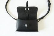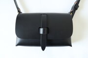 重厚感のあるイタリアンレザーを一枚で仕立てたショルダーバッグ。