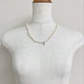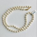 オールノットネックレスの特徴として、万が一糸が切れた場合でもばらばらにならず最小限で抑えられる点や、玉同士が密着していないので擦れあいにくく傷も付きにくい点・また玉同士が少し離れている為、首回りにフィットしやすくなっている点等がございます。この仕様は特に海外で人気があり、比較的高品質アクセサリー類によくみられる仕様です。※弊社の自社工場にて塗装したパールになります。品質の状態も維持されており、剥がれや大きな目立った傷などもございません。稀にピンホールや小さい凹み等が見られる場合がございますが、自社にて検品の上、品質に問題は無く許容範囲とさせて頂いております。