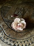 透け感のある乾いた皺のあるベージュピンクの薔薇です。