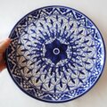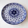 鮮やかなコバルトブルー一色で描いた幾何学模様の絵皿です。