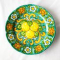 絵皿 26cm GEO056 マヨリカ焼き イタリア陶器 レモン柄 ディナー皿 エメラルドグリーン