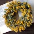 たっぷりミモザの ボリュームスワッグ ドライフラワー ブーケたっぷりのミモザのスワッグが無事に届きました。 とても綺麗な黄色で、早速居間に飾りました。 見ていると和みます。 ありがとうございました。