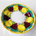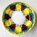 丸皿 26cm GEO040 マヨリカ焼き イタリア陶器 レモンとブドウ柄 絵皿
