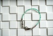 小さな石をつないだきゃしゃなブレスレットですので、ゆるっとつけていただくと、手首をより美しくきゃしゃに見せてくれる効果も期待できそうです。