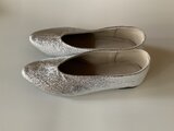 シルバー パンプス フラット|痛くない ぺたんこ 靴|歩きやすい 大人 女性用 レザーシューズ