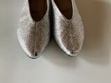 輝く足元で魅せる、大人のためのシルバーパンプス。