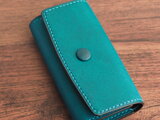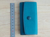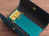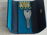 総手縫い│くるみボタン、真鍮金具仕様の4連キーケース│トルケーゼ(ターコイズ)