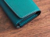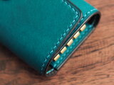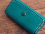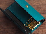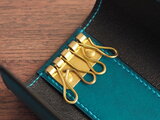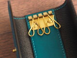手縫い仕立てで裁断から、仕上げまで全て手作業で作られた、真鍮素材の金具を使用した4連キーケースになります。真鍮素材のキーケース用の金具は最近では数が少なくなってきています。イタリアンレザーのマルゴー トルケーゼ(トルコ石、ターコイズ)をメインの素材とし真鍮金具の素材感とマルゴーレザーの表面起毛した柔らかな風合いがヴィンテージ感を高めています。