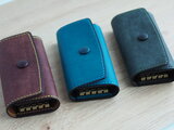 このキーケースは、鍵だけではなくスマートキーも収納できる設計で、毎日の使用に最適です(スリムな設計なのでスマートキーを収納した場合は他の鍵が入らなくなる可能性が有ります)。さらに、摩擦に強く通気性の良い革であるアメ豚を裏貼りして強度を高めており、耐久性にも配慮されています。真鍮金具は錆びにくく、使うほどにその風合いが増し、革とともに経年変化を楽しむことができます。ホックも真鍮で出来ており同種の革を使い表面を包んでいます。円形に切り出した革の周囲を薄く漉ききれいな円形に成形出来るように調整しました。