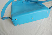 綺麗なスカイブルーのヌメ革で作ったリュックです。