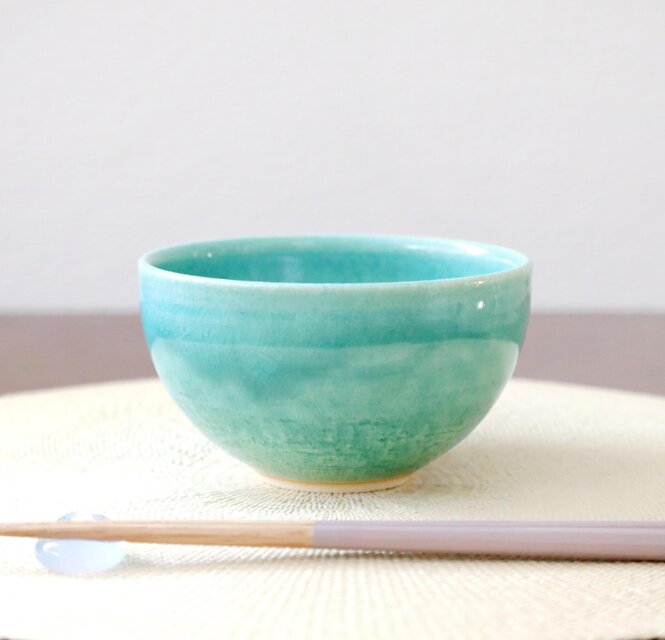 鮮やかだけど、どこか柔らかく優しさのある色彩のトルコブルー釉。