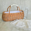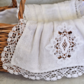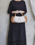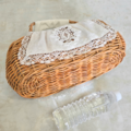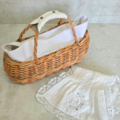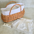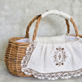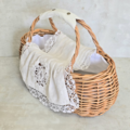 ナチュラルなかごに、優しい白のリネンとレースが映える、大人かわいい一点。