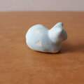 土の塊を猫のカタチに作り、空色の色土を塗り