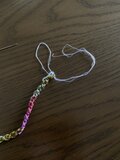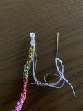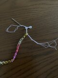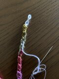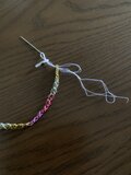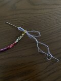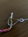 〈色を合わせると目立たなくなります。ただし、付け替えたり、やり直す場合に、切ったりほどいたりする際、グラスコードのレース糸と区別がつきにくくなるため、グラスコードを破損させないように注意が必要になります!〉