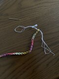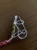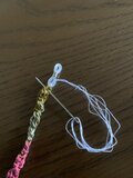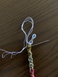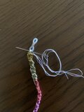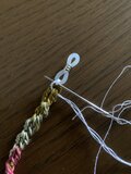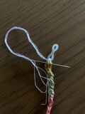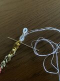 針を使って、先ほど巻いた糸(写真12~17)に糸をくぐらせてください。(写真18)