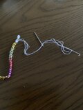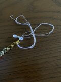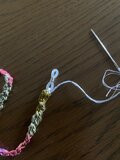 針を使って、糸をグラスコードの輪とゴム金具に通します(糸がきれいに見えるように、適度に引っ張りながら、形を整えてください)。