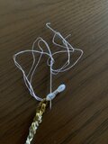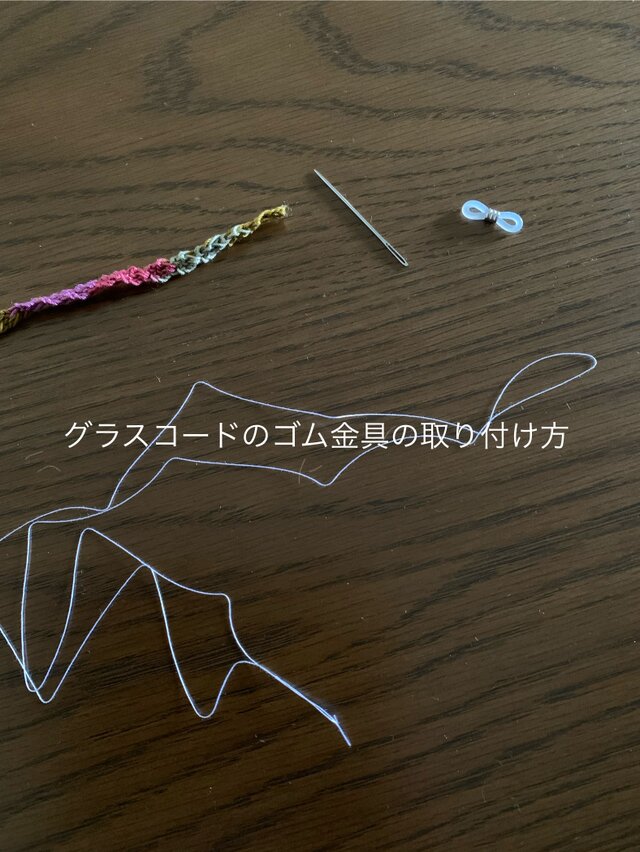 針を使って、糸をグラスコードの輪の部分とゴム金具に通します。(写真3~5)