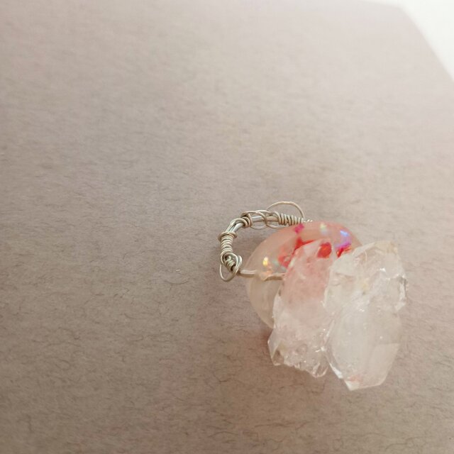UVレジンの土台にころんと原石が乗ったリングです。