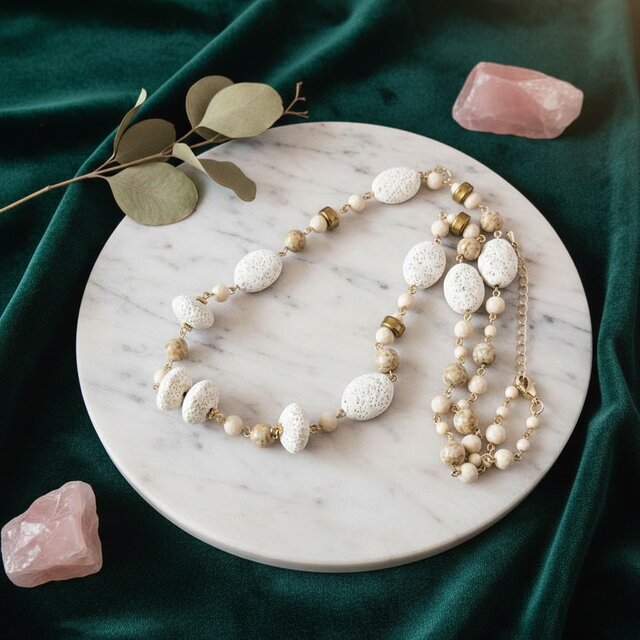 溶岩(ラヴァ)を加工したビーズを使用したネックレス。