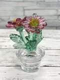 ガラスでできた、小さなマーガレットの鉢植えです。