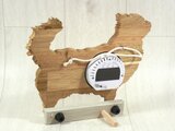 チワワ(ロングコート)の姿を模った木製のデジタル温・湿度計(時計付)です。