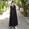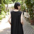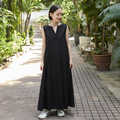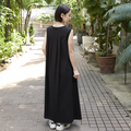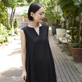 【着丈調整可能】すっきり華奢見せAライン コットン キーネック ノースリ ワンピース ブラック 0655BK