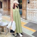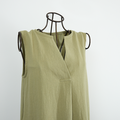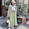 【着丈調整可能】すっきり華奢見せAライン コットン キーネック ノースリ ワンピース ピスタチオ 0655PT