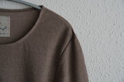 他のケンランドリネンニット製品と同様、山形の工場で、1枚ずつ時間をかけて編んでいます。