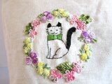 清潔感のあるリネン素材と、春らしいにゃんことお花がポイントです。