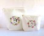 最後の写真は、標準で販売中の春うららにゃんこポーチ(2400円)と並べてみました。大きさの参考にしてください。