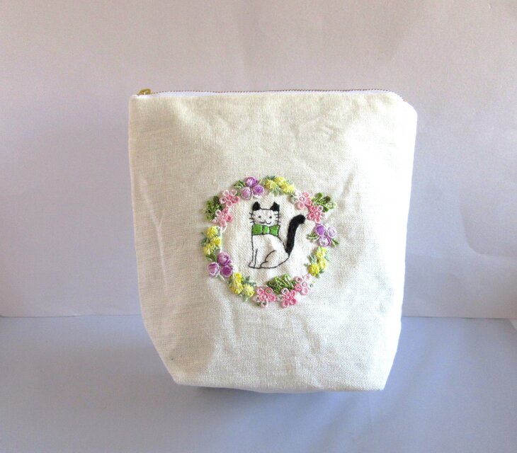 猫刺繍の平ポーチ*虹わたりの銀色猫たちC本日無事に届きました。 早速使わせていただきます。可愛いコースターもありがとうございました。 またよろしくお願いします。