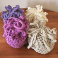 手のひらサイズのフリルつき巾着(黄緑〜緑)