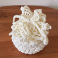 手のひらサイズのフリルつき巾着(ホワイト〜水色)
