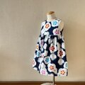 子供 浴衣地ひかえめフレアーワンピース 注染水玉なでしこ(紺地) 80-130サイズ〈受注製作〉