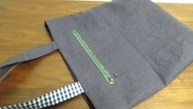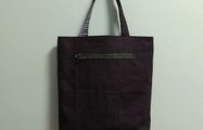 パープル色の帆布に裏はコットンリネンのパープルチェック生地でしっかりしたバッグに仕上がりました。20センチファスナーポケットもついています。