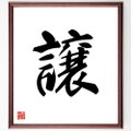 一文字「譲」を書道家が毛筆書道で色紙に直筆、額に入れてお届けします。当店では挑戦、努力、成功、幸福、感謝、成長、家族、仕事、自己啓発など様々なテーマから人生の糧となる名言、四字熟語、諺、故事成語、格言を厳選、毛筆で直筆、お届けしています。これまで、6,000名以上の方からご注文いただき、お届けしてきました。