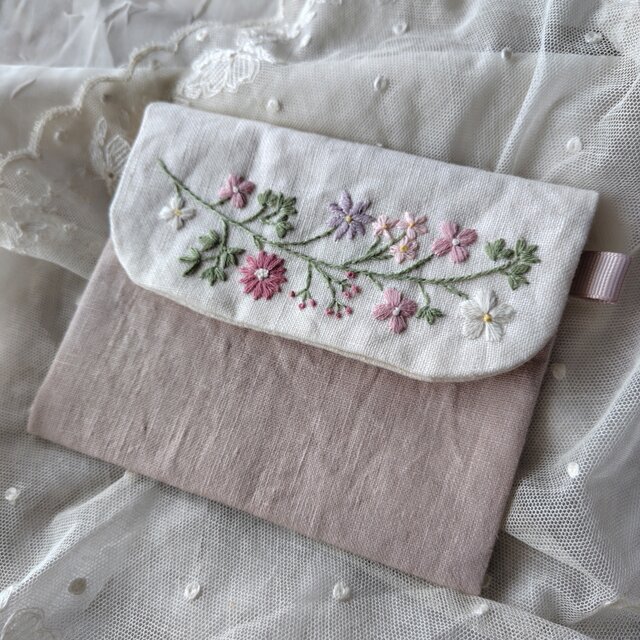 優しい雰囲気の糸を使った野の花のミニポーチです。