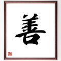 一文字「善」を書道家が毛筆書道で色紙に直筆、額に入れてお届けします。当店では挑戦、努力、成功、幸福、感謝、成長、家族、仕事、自己啓発など様々なテーマから人生の糧となる名言、四字熟語、諺、故事成語、格言を厳選、毛筆で直筆、お届けしています。これまで、6,000名以上の方からご注文いただき、お届けしてきました。