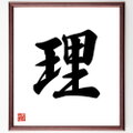 一文字「理」を書道家が毛筆書道で色紙に直筆、額に入れてお届けします。当店では挑戦、努力、成功、幸福、感謝、成長、家族、仕事、自己啓発など様々なテーマから人生の糧となる名言、四字熟語、諺、故事成語、格言を厳選、毛筆で直筆、お届けしています。これまで、6,000名以上の方からご注文いただき、お届けしてきました。