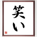 名言「笑い」を書道家が毛筆書道で色紙に直筆、額に入れてお届けします。当店では挑戦、努力、成功、幸福、感謝、成長、家族、仕事、自己啓発など様々なテーマから人生の糧となる名言、四字熟語、諺、故事成語、格言を厳選、毛筆で直筆、お届けしています。これまで、6,000名以上の方からご注文いただき、お届けしてきました。