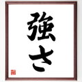名言「強さ」を書道家が毛筆書道で色紙に直筆、額に入れてお届けします。当店では挑戦、努力、成功、幸福、感謝、成長、家族、仕事、自己啓発など様々なテーマから人生の糧となる名言、四字熟語、諺、故事成語、格言を厳選、毛筆で直筆、お届けしています。これまで、6,000名以上の方からご注文いただき、お届けしてきました。